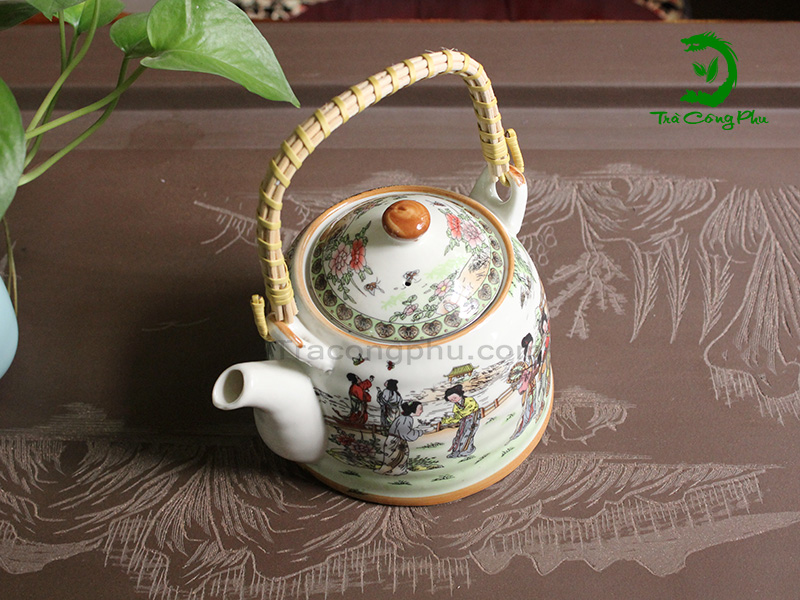 Ấm sứ A031 thuộc dòng ấm chén cao cấp của Đài Loan được tráng men sứ trong và bóng, bảo vệ ấm khó bám ố trà, ấm chịu nhiệt giữ được hương thơm ngon của trà, ủ ấm trà mọi lúc mọi nơi, quai ấm được thiết kế một cách lạ mắt, cầm chắc chắn. Trên thân ấm phác họa bức tranh năm nàng tiên đang thưởng ngoạn,du xuân ở đó có non xanh, có nước biếc,có những điệu nhạc vần thơ. Sự đa dạng về màu sắc của thiên nhiên,không chỉ tạo ra vẻ trẻ trung tươi mát mà còn khiến cho ta như lạc vào chốn bồng lai thiên cảnh.