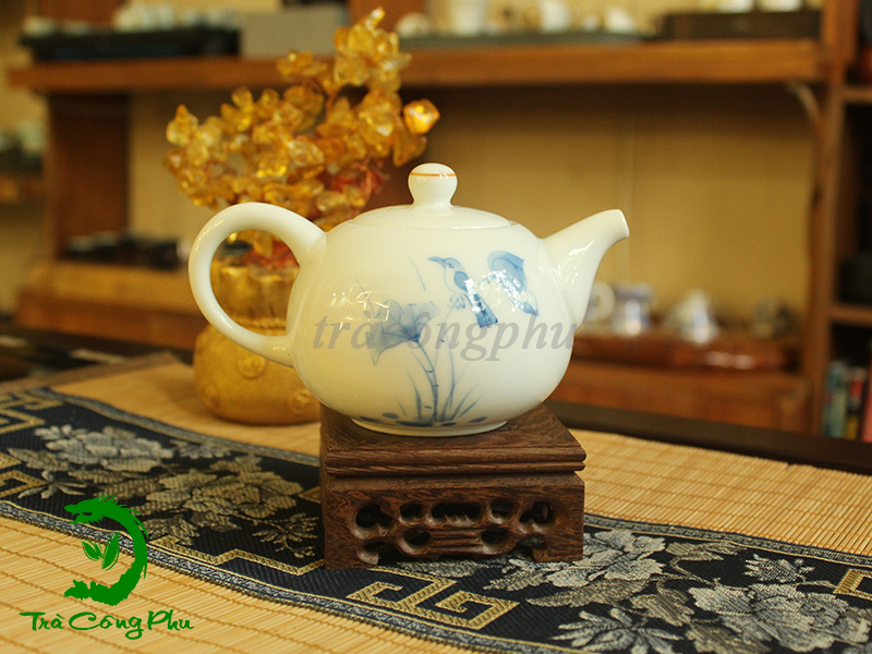 Ấm Sứ Liên Điểu - A074 thuộc dòng ấm chén cao cấp của Đức Hóa- Trung Quốc được tráng men sứ trong và bóng, bảo vệ ấm khó bám ố trà. Trên thân ấm phác họa hình ảnh chim hỷ tước đậu cành sen: hỷ tước là loài chim của sự may mắn của những điều tốt đẹp, sen là loài hoa tượng trưng cho sự thanh cao.