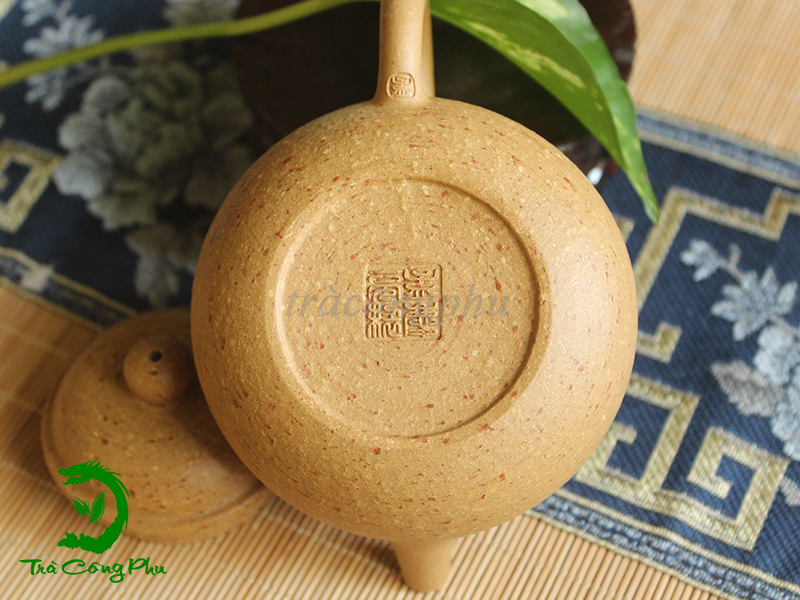 Ấm được chế tác đảm bảo đầy đủ các yếu tố đặc điểm cần có ở 1 chiếc ấm tử sa dung thiên mà giá cả lại vô cùng phải chăng. Dấu triện của tác giả dưới nắp ấm.
