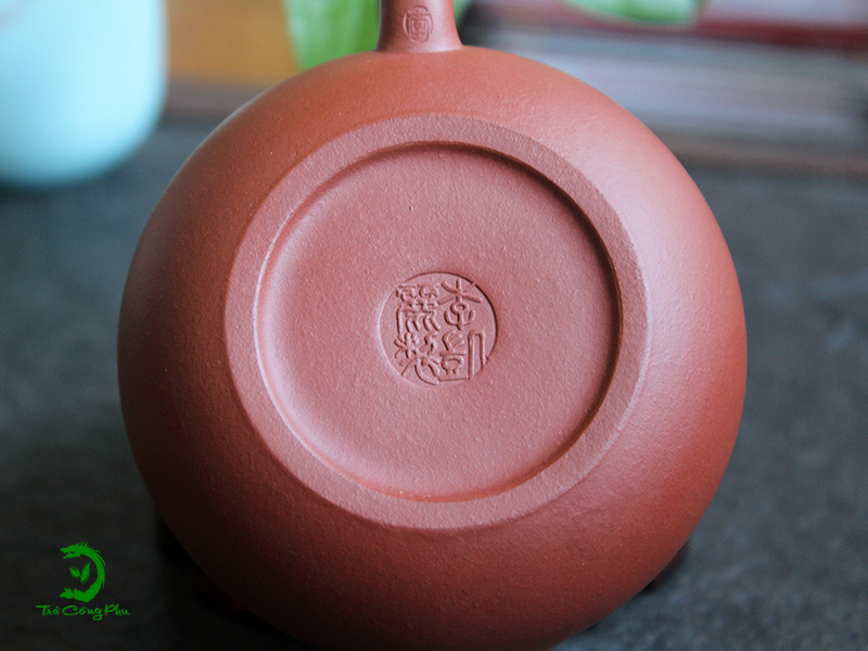 Dấu triện của tác giả dưới đáy ấm và quai ấm rõ ràng, đều nét.
