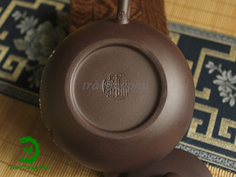 Triện ấm được đóng dấu một cách cẩn thận dưới đáy và quai ấm.