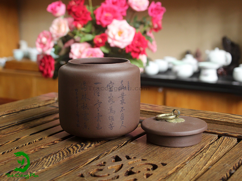 Bình đựng trà có dáng bầu tròn đều, nắp và miệng khít chặt tránh cho trà tiếp xúc với độ ẩm và không khí làm ảnh hưởng đến chất lượng của trà.
