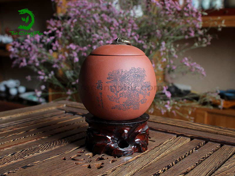 Bình đựng trà có dáng bầu tròn đều, nắp và miệng khít chặt tránh cho trà tiếp xúc với độ ẩm và không khí làm ảnh hưởng đến chất lượng của trà.