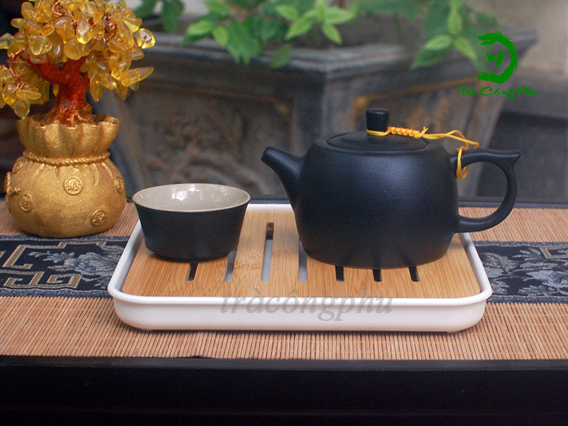 Sự tiện nghi của bộ sản phẩm còn được thể hiện qua thiết kế đồng bộ, đáp ứng hoàn hảo cho những buổi trà đạo gia đình hoặc tiếp khách. Khay trà được thiết kế thông minh, dễ dàng tháo lắp và vệ sinh, giúp không gian thưởng trà luôn gọn gàng và sạch sẽ. Đây chính là lựa chọn lý tưởng cho những ai đang tìm kiếm một trải nghiệm trà đạo đẳng cấp, nơi vẻ đẹp của nghệ thuật gốm sứ hòa quyện cùng sự tiện lợi của đời sống hiện đại.