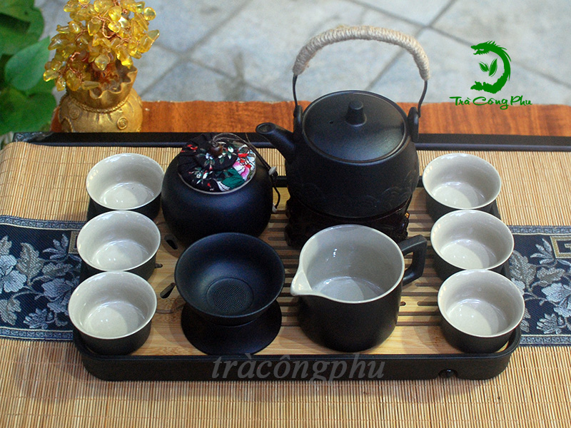 Đây là một bộ ấm chén hoàn chỉnh chuyên nghiệp bao gồm 1 Ấm trà, 1 Tống chuyên trà, 1lọc trà cùng 6 chén quân. Tống và lọc trà giúp nước trà luôn trong trẻo và được hòa quyện đồng đều trước khi rót ra các chén trà nhỏ. Tổng thể thiết kế mộc mạc nhưng đầy quyền năng của bộ sản phẩm không chỉ giúp giữ trọn vẹn hương vị nguyên bản của lá trà mà còn nâng tầm trải nghiệm thư giãn cho gia chủ. Đây chắc chắn là lựa chọn lý tưởng cho những ai đang tìm kiếm một bộ trà cụ gốm sứ đen vừa mang tính nghệ thuật cao, vừa đáp ứng tốt nhu cầu thực dụng hàng ngày.