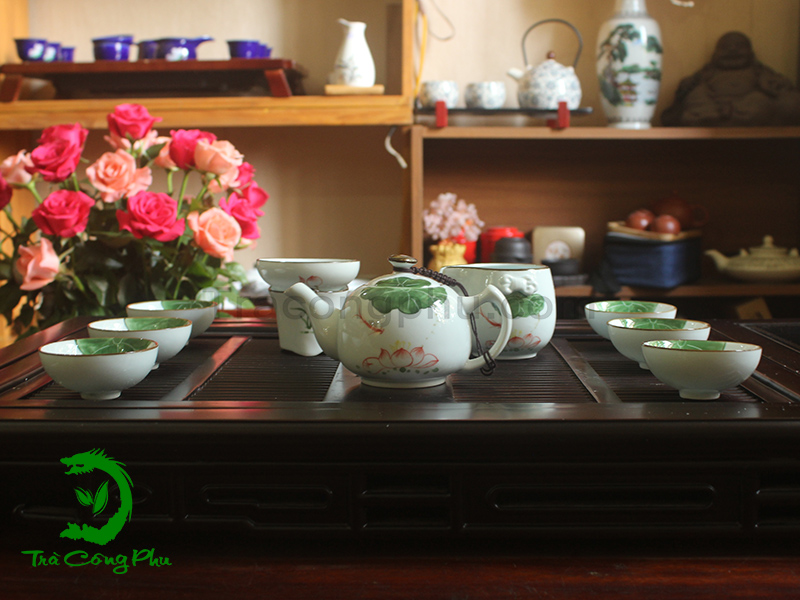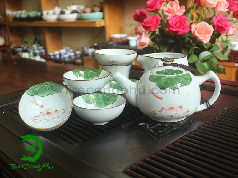 Bộ Ấm Chén Sứ Hoa Sen - BAC322