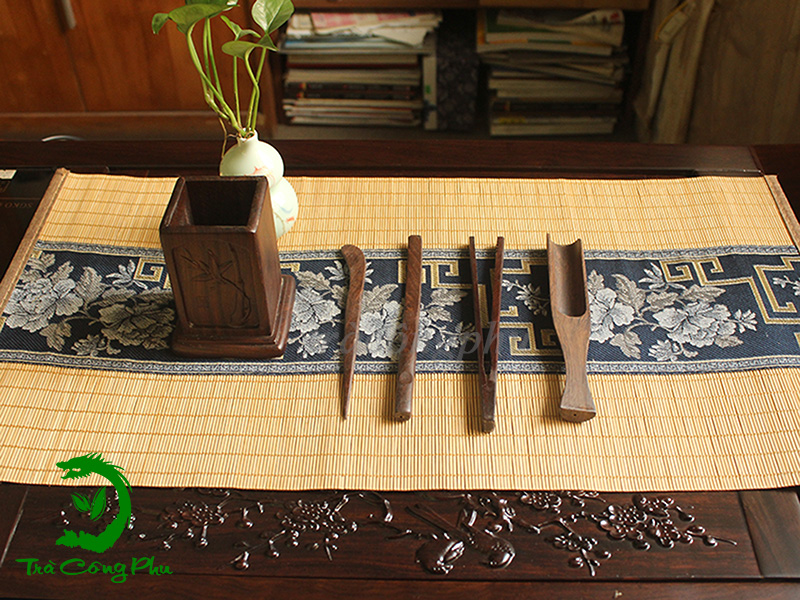Bộ Dụng Cụ Gỗ - BDC73 bao gồm: nhíp gắp chén, cây đảo trà, muôi múc trà và cây thông trà. Tất cả đều được mài dũa cẩn thận, tỉ mỉ nổi bật lên vân gỗ bóng nhẹ.