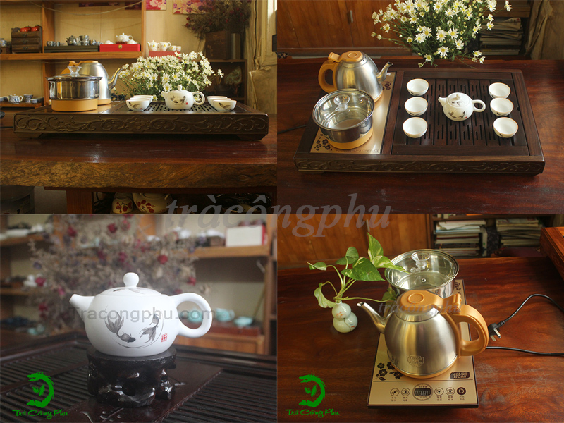 + 1 khay trà + 1 bếp điện + 1 ấm đun nước + 1 nồi khử trùng + hệ thống dẫn nước.