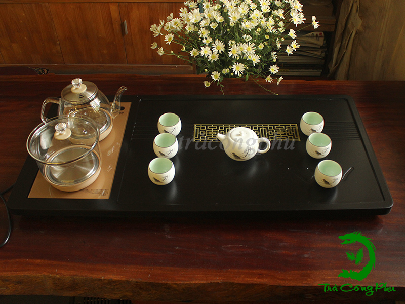 + 1 khay trà + 1 bếp điện + 1 ấm đun nước + 1 nồi khử trùng + hệ thống dẫn nước.