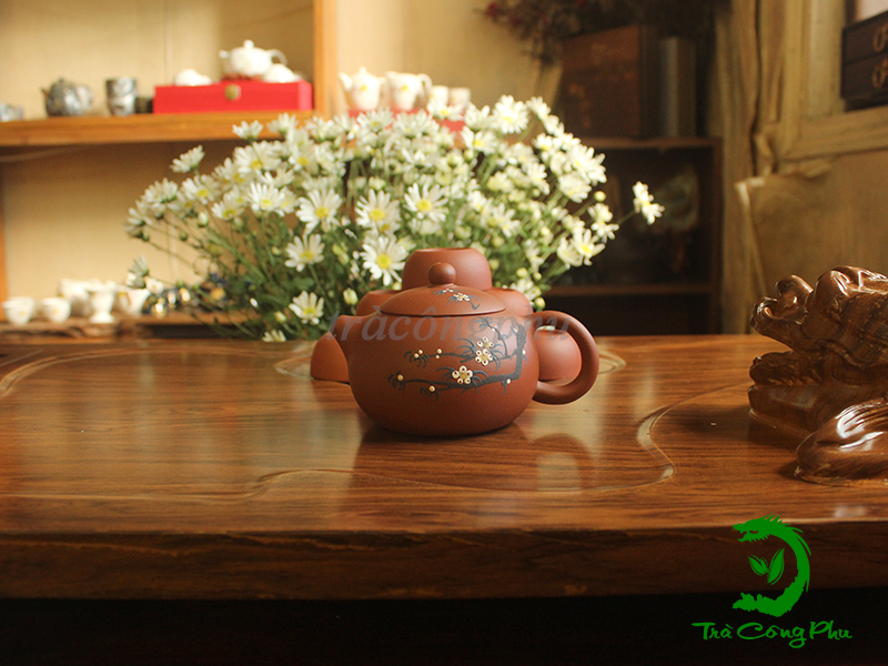 Ấm Tử Sa Tây Thi Mai Hoa - ATS1152 được phác họa cành mai. Ở Trung Quốc, các nhánh của cành mai khi phát âm nghe có nét giống như đầu mày - chữ cái đầu tiên của con chim hỉ thước, một loài chim mang đến điềm lành, hạnh phúc, vui vẻ. Bộ sản phẩm phù hợp với mọi loại bàn trong phòng khách, đem lại cho phòng khách quý thưởng trà một không gian sang trọng, giúp quý khách nâng nghệ thuật thưởng trà lên tầng cao mới.