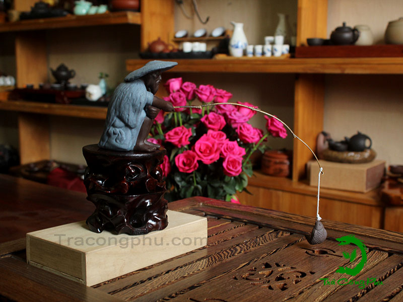Đồ Chơi Bàn Trà - DCBT17 là tượng Lã Vọng Câu Cá ( Ngư ông đắc lợi). Tích kể rằng Khương Tử Nha vốn là người phương đông, từng làm rất nhiều ngành nghề nhưng đến năm 60 tuổi vẫn nghèo khổ lưu lạc, duy chỉ có một chí lớn hơn người. Sau ông ra làm quan cho Trụ Vương nhưng do vua vô đạo, Đắc Kỷ lại có ý hại ông nên phải lội sông trốn chúa.