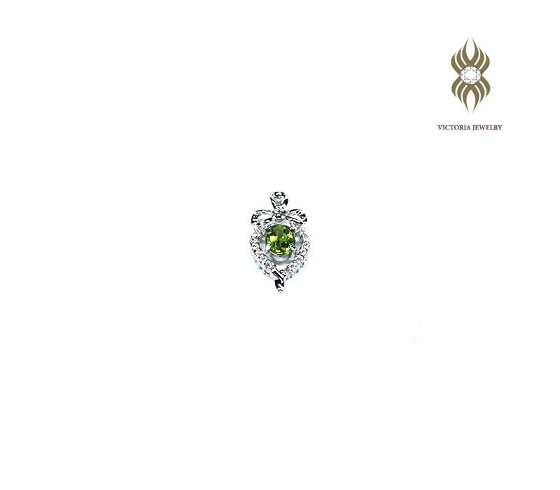 Mặt Dây Chuyền Đá Peridot - NT256P2 được chế tác theo phong cách quý tộc, mạnh nổi bật với viên đá Peridot chính giữa. Bao quanh ôm lấy thân là dãy nhữngviên đá Zircon trắng to từ Myanmar tạo thành hình trái tim. Điểm nhấn của mặt dây chuyền là khuyên đeo dây được tạo hình chiếc nơ giúp tôn lên vẻ nữ tính dịu dàng của người phụ nữ.