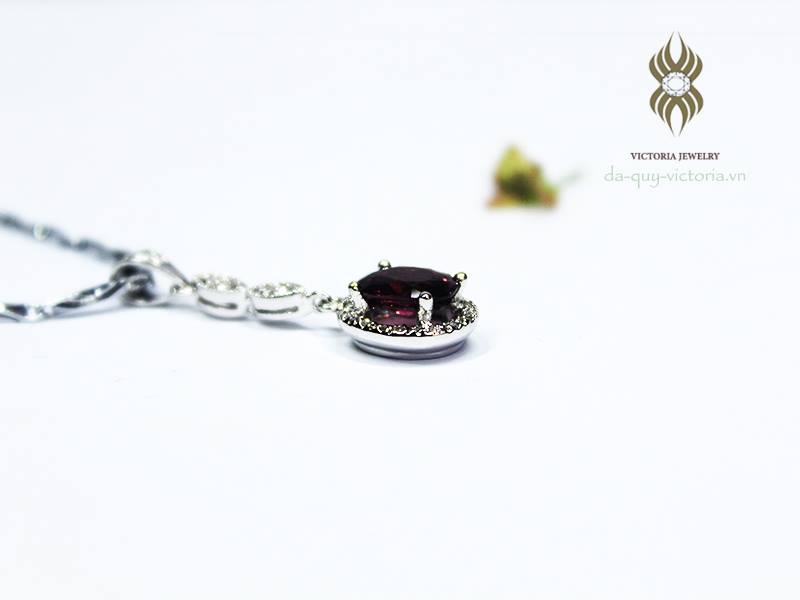 Mặt Dây Chuyền Đá Thạch Lựu ( Garnet) - NT4G1 được chế tác theo hình bầu dục trung tâm là viên đá Garnet hình bầu dục. Bao quanh ôm lấy thân là những viên đá Zircon trắng từ Myanmar giúp làm tôn thêm vẻ đẹp của mặt dây. Đặc biệt nhà thiết kế còn đặc biệt đính kết hai viên đá Zircon tròn ở phía trên tạo nét thanh mảnh, lịch sự nhưng vẫn quý phái, sang trọng.